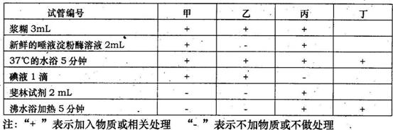 33.(7分)取甲、乙、丙、丁四支洁净的试管,按照下表中顺序依次加入有关物质并作相