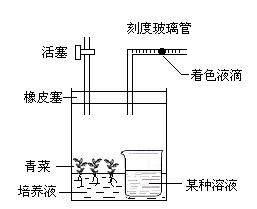 (1)测定青菜的呼吸作用速率时,需要将装置放在 的环境中,烧杯中的溶液选择 。在单位时间内,着色液滴向 (左、右)移动M厘米。