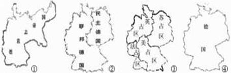 17.下列四幅地图反映了德国历史上的版图变化情况。其变化顺序正确的是