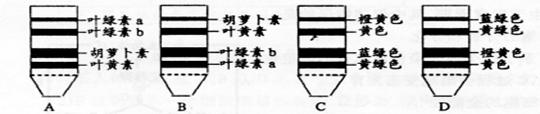 .下图为某同学对植物叶绿体中色素分离的结果,其中所标记的色素名称或颜色正确的是