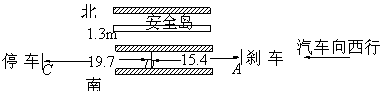 1.一位观光游客(年逾七旬),被撞死在斑马线上,肇事司机经过律师授意后,一口咬定是老人在没有示意的情况下突然快速地走出安全岛向南而行,虽然他已经紧急刹车,但还是发生了不幸,汽车撞上老人后经过19.7m停下来,出事点D距安全岛1.3m,距刹车点15.4m,但经警方调查取证后发现,目击者证实说老人本是一直向北而行,这到底是怎么回事?为了清晰了解事故现场,现以图示之。