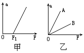 (1)他以小桶及小桶内的砝码的总重力作为细线对小车的拉力F,测出不同拉力F对应的加速度a值,并把各数据标在a-F坐标系上,发现它们都在一条直线的附近,这条直线不过坐标原点,如图(甲)所示,而与横坐标轴交于F1点,产生这种情况的原因是什么?