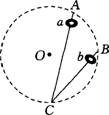 如图所示,AC、BC为位于竖直平面内的两根光滑细杆,A、B、C 三点恰好位于同一圆周上,C为该圆周的最低点,a、b为套在细杆上的两个小环.两小环同时分别从A、B点由静止下滑,则 ( )