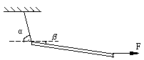 21、在均匀棒AB的两端各系一根轻绳, 系于A端的轻绳另一端固定在天花板上, 再将系于B端的轻绳用力F拉到绳呈水平方向, 系在A端的轻绳与水平成α角, 棒与水平成β角, 如图18所示. 试证明tanα=2tanβ.
