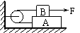 (1)(5分)如图所示,物体A、B叠放在粗糙水平地面上,用一根细绳通过一光滑定滑轮相连,现给B施一水平向右的拉力F使B在A上表面水平向右匀速运动,B与A接触面光滑,A与水平面间动摩擦因数为0.1,B的质量为1kg,A的质量为2kg,g取10m/s22222 22.则F=___N。