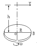 20、如图所示, 在半径为R的水平圆盘的正上方高h处水平抛出一个小球, 圆盘做匀速转动,当圆盘半径OB转到与小球水平初速度方向平行时,小球开始抛出, 要使小球只与圆盘碰撞一次, 且落点为B, 求小球的初速度和圆盘转动的角速度.
