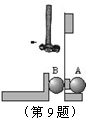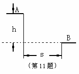 如图所示,小球从平台A水平抛出落到平台B上,已知AB的高度差为h=1.25m,两平台的水平距离为s=5m,则小球的速度至少为___________m/s时,小球才能够落到平台B上。(g取10m/s2)
