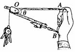10、如图所示,用拇指、食指捏住圆规的一个针脚,另一个有铅笔芯的脚支撑在手掌心位置,使OA水平,然后在外端挂上一些不太重的物品,这时针脚A、B对手指和手掌均有作用力,对这两个作用力方向的判断,下列各图中大致正确的是 ( )
