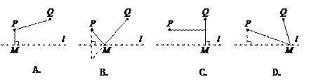 上的某点M处修建一个水泵站,向P、Q两地供水,现有如下四种铺设方案,图中实线表示铺设的管道,则铺设的管道最短的是…………………………………………( ▲ )
