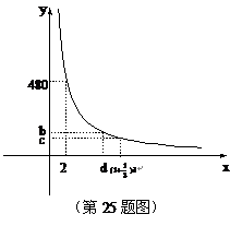 25. (本小题满分10分)码头工人往一艘轮船上装载货物,装完货物所需的时间y(分钟)与装载速度x(吨/分钟)之间满足反比例函数关系,图象如图所示.