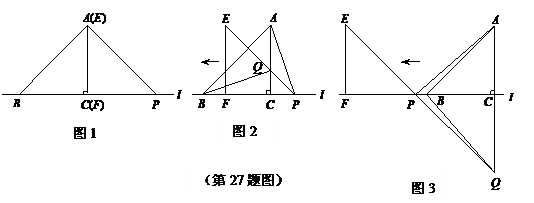 27. (本小题满分12分)如图1,△ABC的边BC在直线l上,AC⊥BC,且AC=BC;△EFP的边FP也在直线l上,边EF与边AC重合,且EF=FP.