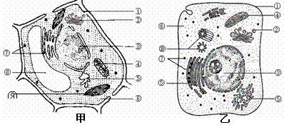 (6分)下图甲、乙分别是两类高等生物细胞的亚显微结构模式图。请据图回答: