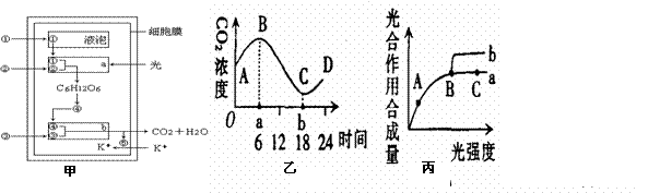 (3)乙图中,一昼夜中CO2浓度最高和最低的时间点分别是a时和b时,a、b两个时间点的含义是: 。