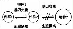 A.从图中可以看出,一个物种可以有很多种群,这些种群间只是因为地理隔离,阻碍了基因交流
