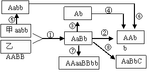 14.右图中,甲、乙表示水稻两个品种,A、a和B、b表示分别位于两对同源染色体上两对 等位基因,①-⑧表示培育水稻新品种的过程,则下列说法错误的是 ( )
