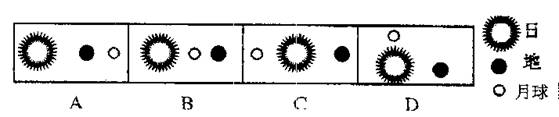 5.当日全食发生时,能反映太阳、地球、月球三者位置关系的是: ( )