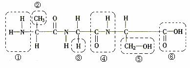 (2)图中④的名称是_____ _____;图中表示R基团的编号是___________________;图中的①的名称是 ;图中的⑥的名称是