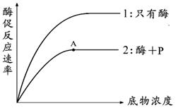 C.P对该酶的活性有抑制作用 D.若反应温度升高,则A点上移