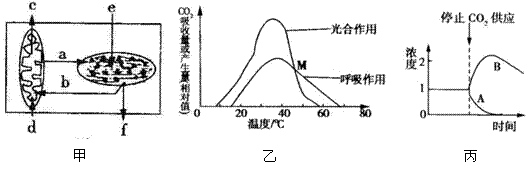 (3)丙图显示,在光照下物质A和物质B的浓度很快达到饱和并保持稳定。此时突然中断CO2的供应,A、B物质的浓度将发生变化。其中,固定二氧化碳的化合物是