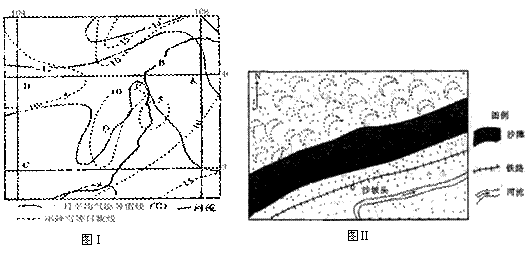 ① 图中铁路和被沙障直接阻隔的沙漠分别是 (填正确项字母)。