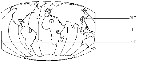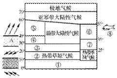 (3)图中气候类型③的成因是 ;气候类型④地区的植被类型是 ;气候类型⑤分布的一般规律是