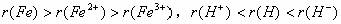核同,价高半径小。即对同一种元素形成的不同的简单微粒中,化合价高的微粒的半径小。如