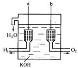 [例3]美国阿波罗宇宙飞船上使用的氢氧燃料电池是一种新型的化学电源,其构造如图所示:a、b两个电极均由多孔碳制成,通入的气体由孔隙中逸出,并在电极表面放电。