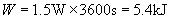 (3)1.5W灯泡连续发光1h,消耗的电能: