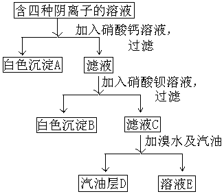 13.现有含I-,Cl-,SO42-,CO32-四种阴离子的稀溶液,为了将它们以沉淀或溶液的形成分离出来,进行了以下操作。
