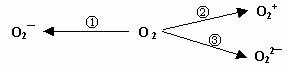 (2)制备含O2-、O22-甚至O2+的化合物都是可能的,通常它们是在氧分子进行下列各种反应时生成的: