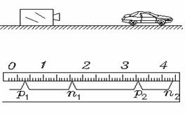 解析:本题首先要看懂B图中标尺所记录的时间每一小格相当于多少:由于P1 P2 之间时间间隔为1.0s,标尺记录有30小格,故每小格为1/30s,其次应看出汽车两次接收(并反射)超声波的时间间隔:P1发出后经12/30s接收到汽车反射的超声波,故在P1发出后经6/30s被车接收,发出P1后,经1s发射P2,可知汽车接到P1后,经t1=1-6/30=24/30s发出P2,而从发出P2到汽车接收到P2并反射所历时间为t2=4.5/30s,故汽车两次接收到超声波的时间间隔为t=t1+t2=28.5/30s,求出汽车两次接收超声波的位置之间间隔:s=(6/30-4.5/30)v声=(1.5/30)×340=17m,故可算出v汽=s/t=17÷(28.5/30)=17.9m/s.