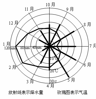 (1)在图B中绘制气温曲线和降水柱状图(8分)。