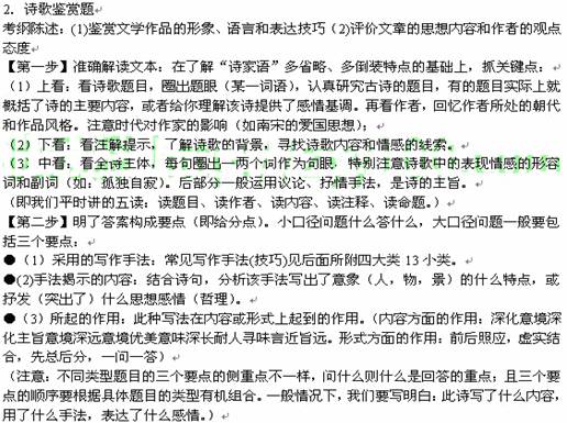 [第三步]]诗歌鉴赏简答题:根据题目类型的不同,选择不同的答题方法。