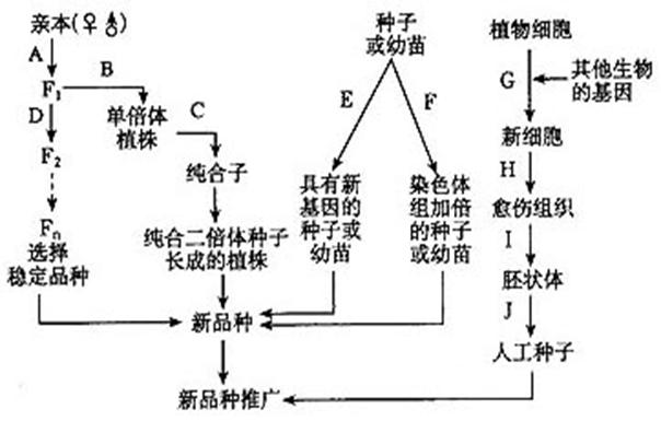 43. (10分)基因突变、基因重组和染色体变异是生物产生可遗传变异的三个来源。右图是生产实践中的几种不同育种方法。请分析回答下面的问题。