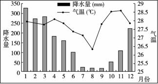 5.读爪哇岛气候资料图,判断该地的气候类型为 ( )