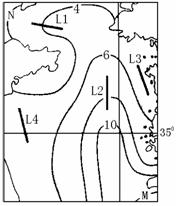 下图中曲线表示等高线,三条连接湖泊的河流都是北岸冲刷严重,读图回答7-8题。