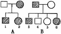11.下图是A、B两个家庭的红绿色盲遗传系谱图,A家庭的母亲是色盲患者,这两个家庭由于某种原因调换了一个孩子,请确定调换的两个孩子是( )