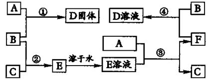 16.(01广东)(12分)室温下,单质A,B,C分别为固体、黄绿色气体、无色气体,在合适反应条件下,它们可以按图2进行反应。又知E溶液是无色的,请回答: