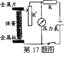 方金属片受到压力的大小。其中R‘是滑动变阻器,R是定值电