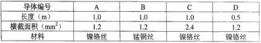 在探究导体电阻大小与哪些因素有关的实验中,采用了“控制变量”的方法。下表是某实验小组在实验中所用导体的相关物理量的记录: