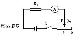 如图所示,R1=5Ω,R2 为滑动变阻器,电源电压保持不变。闭合开关S后,当滑动变阻器的滑片P移至端点b时,电流表的示数为0.5A;当滑片P移至变阻器的中点时,电流表的示数为0.75A。求: