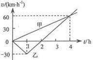例⒈08年海南物理)t = 0时,甲乙两汽车从相距70km的两地开始相向行驶,它们的v-t图象如图所示.忽略汽车掉头所需时间.下列对汽车运动状况的描述正确的是----( )