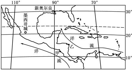 C.甲沿岸有寒流通过,降水少,乙处于暖流影响,降水多