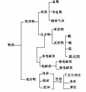 (2). 树状分类法:按照一定标准对同类物质进行再分类。如:根据物质的组成对物质分类