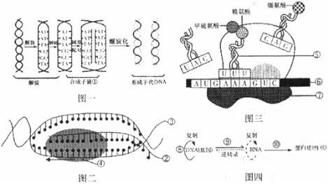 (4)图4表示了遗传信息传递的一般规律,克里克将此规律命名为______________;图二和图三分别能表示图四中的____________(填编号)过程。