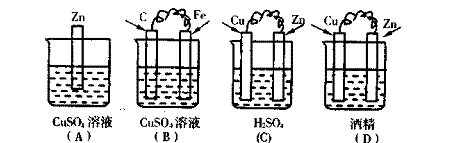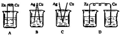 39.A下列烧杯中盛放的都是稀H2SO4,在Cu电极上产生大量气泡的是 ( )