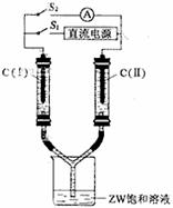 (3)如图所示装置,两玻璃管中盛满滴有酚酞溶液的ZW饱和溶