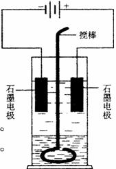 82.在玻璃圆筒中盛有两种无色的互不相溶的中性液体。上层液体中插入 两根石墨电极,圆筒内还放有一根下端弯成环状的玻璃搅棒,可以上下搅动液体,装置如右图。接通电源,阳极周围的液体呈现棕色,且颜色由浅变深,阴极上有气泡生成。停止通电,取出电极,用搅棒上下剧烈搅动。静置后液体又分成两层,下层液体呈紫红色,上层液体几乎无色。根据上述实验回答: