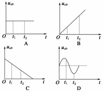 4.如图2所示,在闭合铁芯上绕着两个线圈M和P,线圈P与电流表构成闭合回路.若在t1至t2这段时间内,观察到通过电流表的电流方向自上向下(即由c经电流表至d),则可以判断出线圈M两端的电势差uab随时间t的变化情况可能是图中的( )