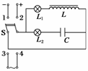 D.在开关置于3、4的瞬间,L2立即发光,而L1亮度慢慢增大